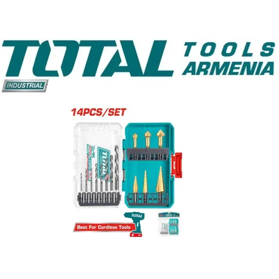14 հատ 4341 HSS հորատման գլխիկներ և աստիճանային հորատման գլխիկներ TOTAL TACSDL61401
