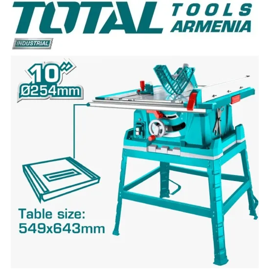 • Total TS526043 - ն սեղանի շրջանաձև սղոց է , հարմարավետ կենցաղային գործիք ` անձնական օգտագործման և տարբեր  նյութերի կտրվածքներ , հատումներ կատարելու համար : Այս հզոր սղոցը տնային օգտագործողներին թույլ է տալիս ոչ միայն աշխատել հարմարավետ , այլև ապահով :