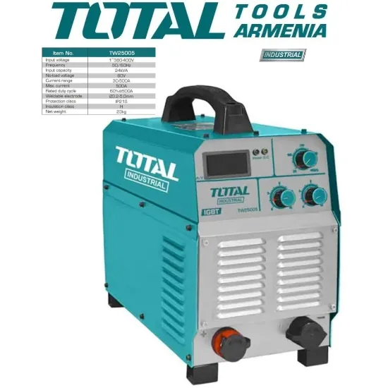 - Total TW25005 - եռակցման սարքը, նախագծված է կոմպակտ, որ մենք հեշտությամբ և արագ շարժվենք , սարքը աշխատում է շարունակաբար երկար ժամանակ ՝ առանց որակի և կարողության նվազման :