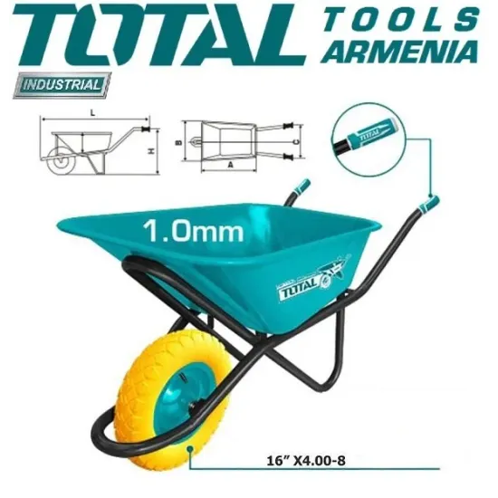 TOTAL THTWB64018GPU  - անվասայլակը  ունի փոքր տարողություն և չափսեր սահմանափակ տարածքներում օգտագործելու համար : Մեկ անիվի առկայությունը մեծապես պարզեցնում է մանևրելը :