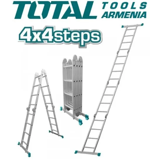 Բազմաֆունկցիոնալ ալյումինե սանդուղք 4 x 4 աստիճան TOTAL THLAD04441