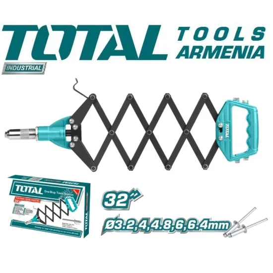 Total 32 " ալյումինե թափքի ձեռքի փականիչ , (3.2 մմ, 4 մմ, 4.8 մմ, 6 մմ, 6,4 մմ) , ամուր և երկարակյաց , ծալովի ամրացման սարք : Իդեալական է մետաղի , պլաստիկի և կաշվի համար :