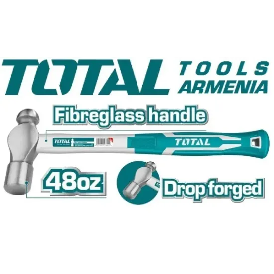 Գնդիկավոր մուրճ 1300գ TOTAL THT74486- ը հարվածային գործիք է, որն օգտագործվում է ատաղձագործական արհեստանոցներում և տնային պայմաններում աշխատելու համար : Այն ամուր է, քանի որ գլուխը պատրաստված է կարծրացված պողպատից : Ապակեթելքը օգտագործվում է որպես բռնակի նյութ,որը նպաստելով հարմարավետ բռնելուն՝ կանխում է ձեռքից սայթաքումը , մեղմացնելով հարվածները :