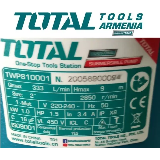 Սուզվող պոմպ կեղտաջրերի 1000 Վտ TWP810001