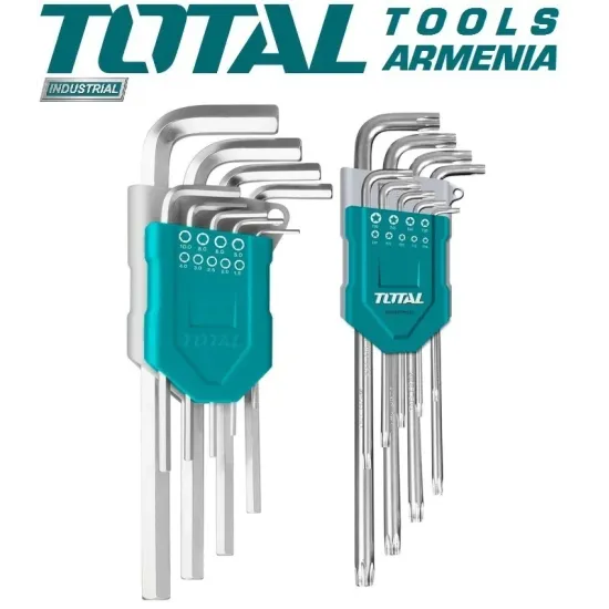 Իմբուսի բանալիների հավաքածու 18 հատ : TOTAL THT106KT0181 - ն օգտագործվում է տարբեր չափերի ամրակներով հավաքման և ապամոնտաժման աշխատանքների համար (կահույքի, սարքավորումների): Գործիքները պատրաստված են քրոմ վանադիումի պողպատից, դիմանում են զգալի բեռների և ունեն երկար շահագործման ժամկետ: Բանալիների երկարաձգված ձևը նրանց թույլ է տալիս աշխատել նույնիսկ դժվարամատչելի վայրերում: