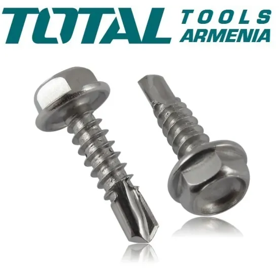 TOTAL WJSS6302521 ինքնաձիգ պտուտակը նախատեսված է տանիքի նյութերը մետաղական կառուցվածքներին ամրացնելու համար : Պատրաստված է կարծրացված պողպատից : Պաշտպանական ցինկի ծածկույթը ապահովում է կոռոզիոն դիմադրությունը : Խորհուրդ - հորատումը չի պահանջում անցքի նախնական հորատում :