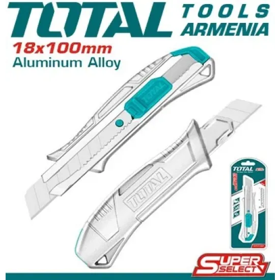 TOTAL THT511807 - ն օգտագործվում է թուղթ , ստվարաթուղթ , պաստառ , բարակ գորգեր և այլ նյութեր կտրելու համար : Եզրագծային բռնակն ապահովվում է անվտանգ բռնումը ՝ առանց սայթաքելու : Սայրը պատրաստված է ճապոնական ածխածնային պողպատից ` SK - 4 : Նորաձև կառուցվածքը շեշտում է մոդելի բոլոր դրական կողմերը :