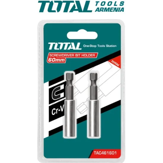 - TOTAL TAC461601 - ը ներառում է 60 մմ երկարությամբ երկու բիթ` պատրաստված մագնիսական հատկություններով քրոմ - վանադիում խառնուրդից : Այս կրիչները ոչ միայն ապահով կերպով պահում են բիթերը , այլ նաև կատարում են երկարացման լարի գործառույթը՝ թույլ տալով ներթափանցել անմատչելի տեղեր :