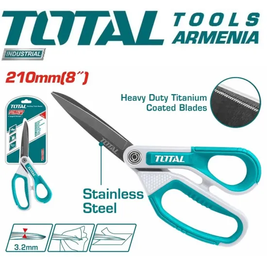 Մկրատ երկար շեղբերով և ռետինե բռնակով 210 մմ TOTAL THSCRS812108