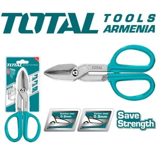 TOTAL THTJ534101 - ը տարբեր ոլորտներում օգտագործվում է բարակ թիթեղներ և այլ նյութեր ` պլաստմաս , կաուչուկ , լինոլեում և այլն կտրելու համար : Գործիքն ապահովում է կոկիկ և հավասար կտրվածք , ունի երկար շահագործման ժամկետ : Կարող է դիմակայել ինտենսիվ և տևական բեռներին : Մատակարարվում է թափանցիկ պլաստմասե տուփով :