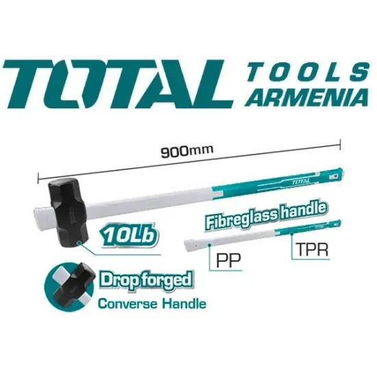 TOTAL THT75110D - ը օգտագործվում է աշխատանքների լայն շրջանակի համար, որտեղ անհրաժեշտ է հարվածային ուժ : Հարվածող մասը քառակուսի է և պատրաստված է 45 ածխածնային պողպատից, կարծրացած է ամրության համար : Էրգոնոմիկ բռնակը պատրաստված է ապակեթելից : Աշխատանքի ընթացքում այն ձեռքից չի սայթաքում և կլանում է ցնցումները՝ ապահովելով գործիքի հարմարավետ օգտագործումը :
