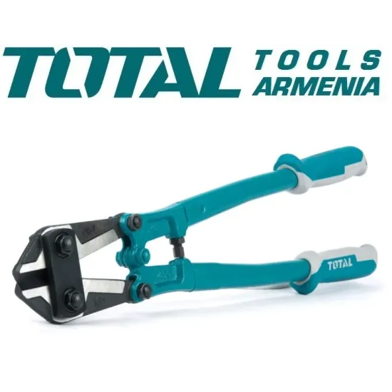 450 մմ TOTAL THT123186 - ը ձեռքի գործիք է, որն օգտագործվում է արդյունաբերության և շինարարության մեջ լարերը, կցամասերը, պտուտակները կտրելու համար : Ապրանքի երկարությունը՝ 450 մմ : Դիզայնը թույլ է տալիս զգալի ջանքեր չկիրառել աշխատանքի ընթացքում : Աշխատանքային մասը պատրաստված է քրոմ - վանադիումի պողպատից, որն ապահովում է բարձր աշխատանքային ռեսուրսը և դիմադրությունը ժանգի նկատմամբ : Օգտագործման դյուրինության համար բռնակները պատրաստված են ջերմապլաստիկ ռետինից : Այս նյութը ձեռքում չի սայթաքում :